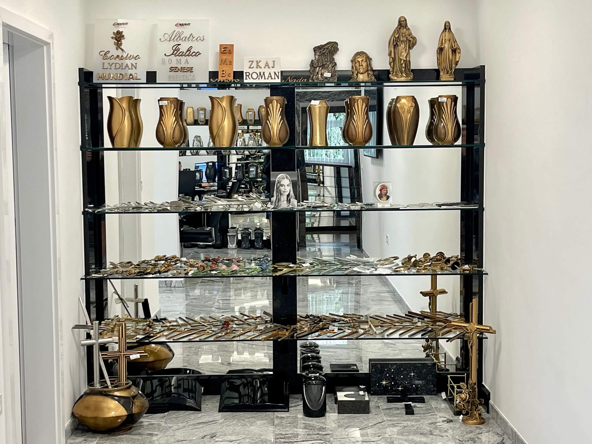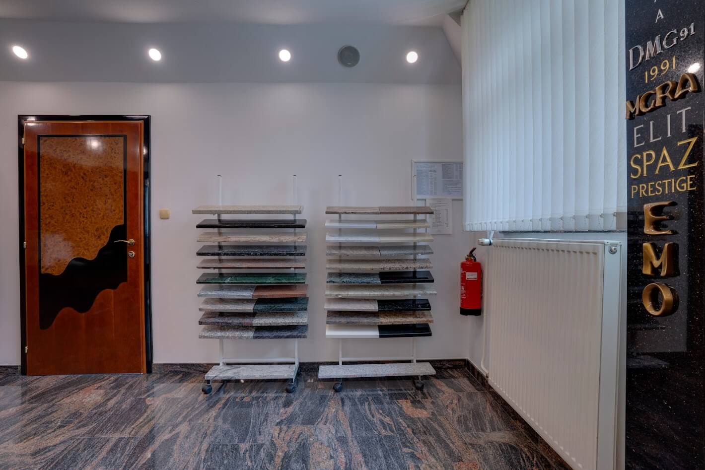 marmorja, granita, poldragih kamnov in ostalih kamnin. Da bi bila odločitev pri izbiri lažja, si lahko stranke material ogledajo tudi v živo.