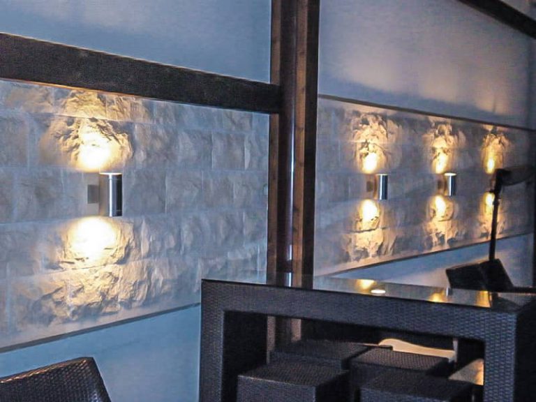 Po idejni zasnovi projektanta smo izdelali detajle kamnite obloge v kombinaciji z lesom na zidu in stropu. Posebna zanimivost pri tem delu je lepljenje masivnega kamna na leseno podkonstrukcijo iz 18 mm debele vezane plošče. Za vezivo marmorja in lesa smo izbrali lepilno-tesnilno maso KENT, ki jo odlikujejo vrhunske karakteristike, katere si lahko pogledate v priloženem tehničnem listu. Lepljenje marmorne obloge na vertikalno leseno oblogo je zelo enostavno in nezahtevno, dejansko kot bi to izvajali z gradbenimi lepili na cementni osnovi. Izvedbeni detajl stropne obloge pa smo izdelali doma v delavnici tako, da smo marmor nalepili na lesene segmente vezane plošče velikosti 73 × 50 cm, kar je skupne teže 90 kg/m2. Te segmente smo nato vstavili v U-profile, ki so pričvrščeni na jekleni podkonstrukciji, sidrani v armirano betonski strop. Jeklena podkonstrukcija je zaradi stropnih inštalacij spuščena 50 cm pod stropom. Tudi ostale kamnoseške izdelke – obloge v lokalu (delovne pulte, police, cokle …) smo pritrdili – prilepili z lepilno maso KENT, ki se je izkazala kot odlično lepilo; ima izredno lepilno moč, saj lepi tudi kamen, vlažen od rezanja, in ne pušča mastnih sledi.